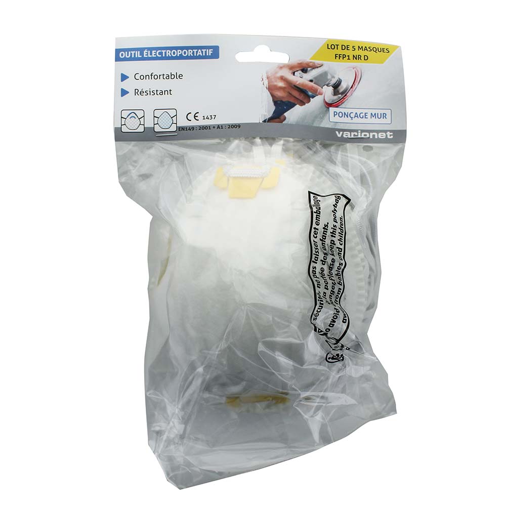 Le Masque de protection respiratoire FFP1 NR D à usage unique est idéal pour tous les travaux de bricolage, de rénovation, de maçonnerie... Il vous protège des microparticules et poussières lorsque vous poncez, découpez, décapez...