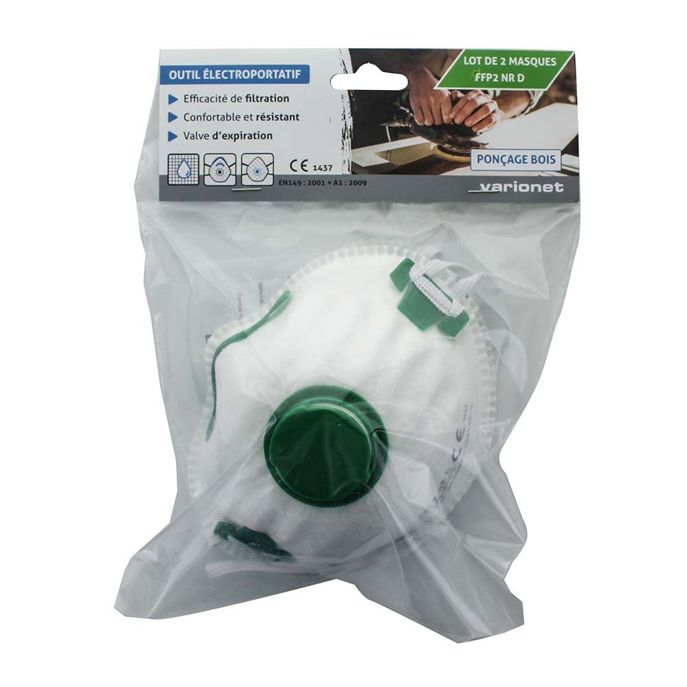 Le Masque de protection respiratoire FFP2 NR D à usage unique est idéal pour tous les travaux de bricolage, de rénovation, de maçonnerie... Il vous protège des microparticules et poussières lorsque vous poncez, découpez, décapez...